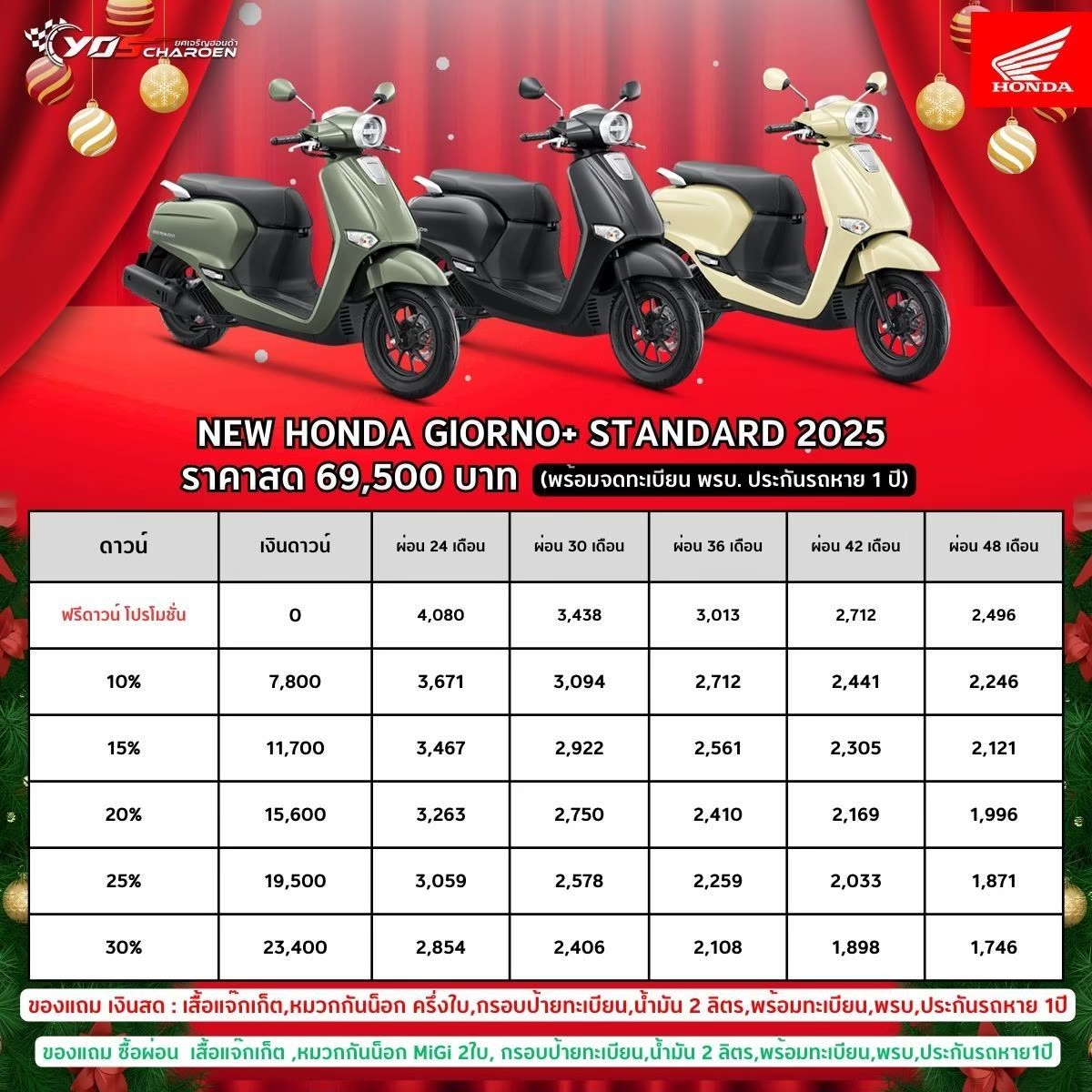 เป็นเจ้าของ Honda Giorno+ วันนี้ แล้วสัมผัสความลงตัวของดีไซน์เรโทรสุดเท่และการขับขี่ที่คล่องตัว เครื่องยนต์ประหยัดน้ำมัน เหมาะกับการเดินทางในเมือง พร้อมข้อเสนอพิเศษ ดอกเบี้ยต่ำ โปรแกรมผ่อนสบาย และการรับประกันจากศูนย์บริการ ทดลองขับฟรีวันนี้ รับข้อเสนอจำกัดเวลา อย่าพลาดโอกาสเติมความสนุกให้ทุกการเดินทางของคุณกับ Giorno+