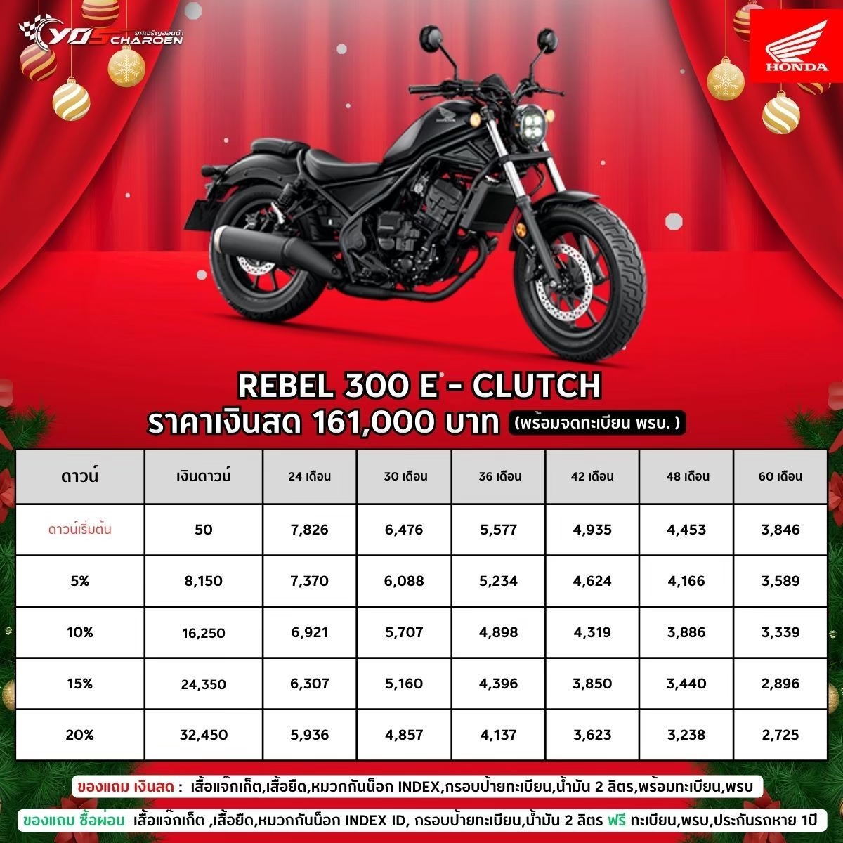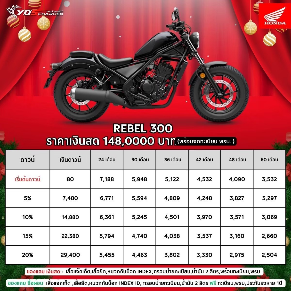 Honda REBEL เป็นมอเตอร์ไซค์ครุยเซอร์สไตล์คลาสสิกที่รวมทั้งความเท่และการใช้งานจริง ด้วยเครื่องยนต์สูบเดี่ยวระบายความร้อนด้วยน้ำ ให้การขับขี่ที่คล่องตัวและแรงบิดตอบสนองดี ท่านั่งสบายควบคุมง่าย เหมาะทั้งการใช้งานในเมืองและทริปสั้นๆ ดีไซน์ต่ำ-กว้างช่วยเพิ่มความมั่นใจในการขับขี่ และยังให้ความคุ้มค่าด้วยการประหยัดน้ำมัน เป็นตัวเลือกที่ลงตัวสำหรับผู้ที่ต้องการรถเท่ ขี่สบาย และใช้งานได้จริง